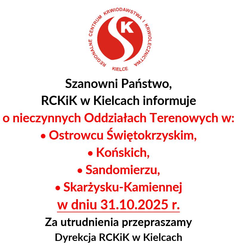 (Uwaga: Oddział w Skarżysku-Kam. nieczynny we wtorki, w które odbywa się akcja wyjazdowa w Starachowicach)