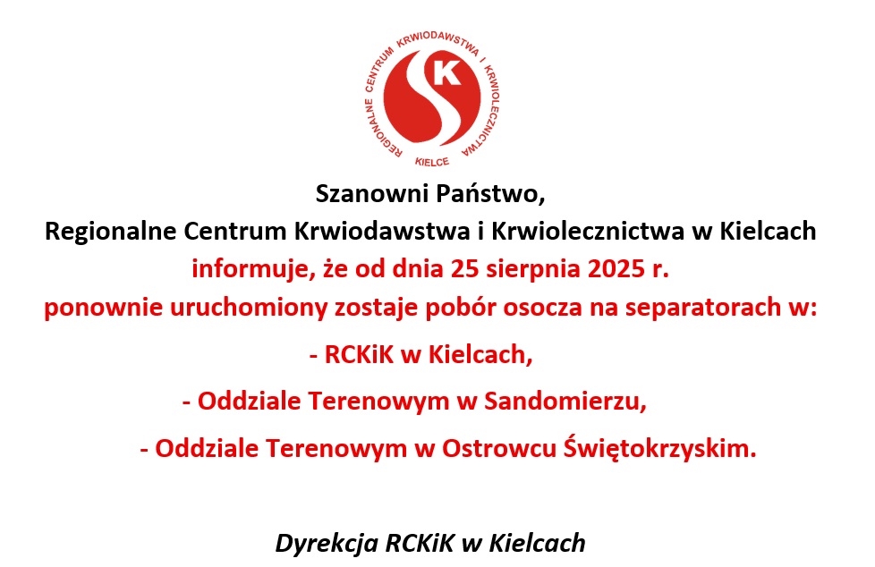 • Regionalne Centrum Krwiodawstwa i Krwiolecznictwa w Kielcach